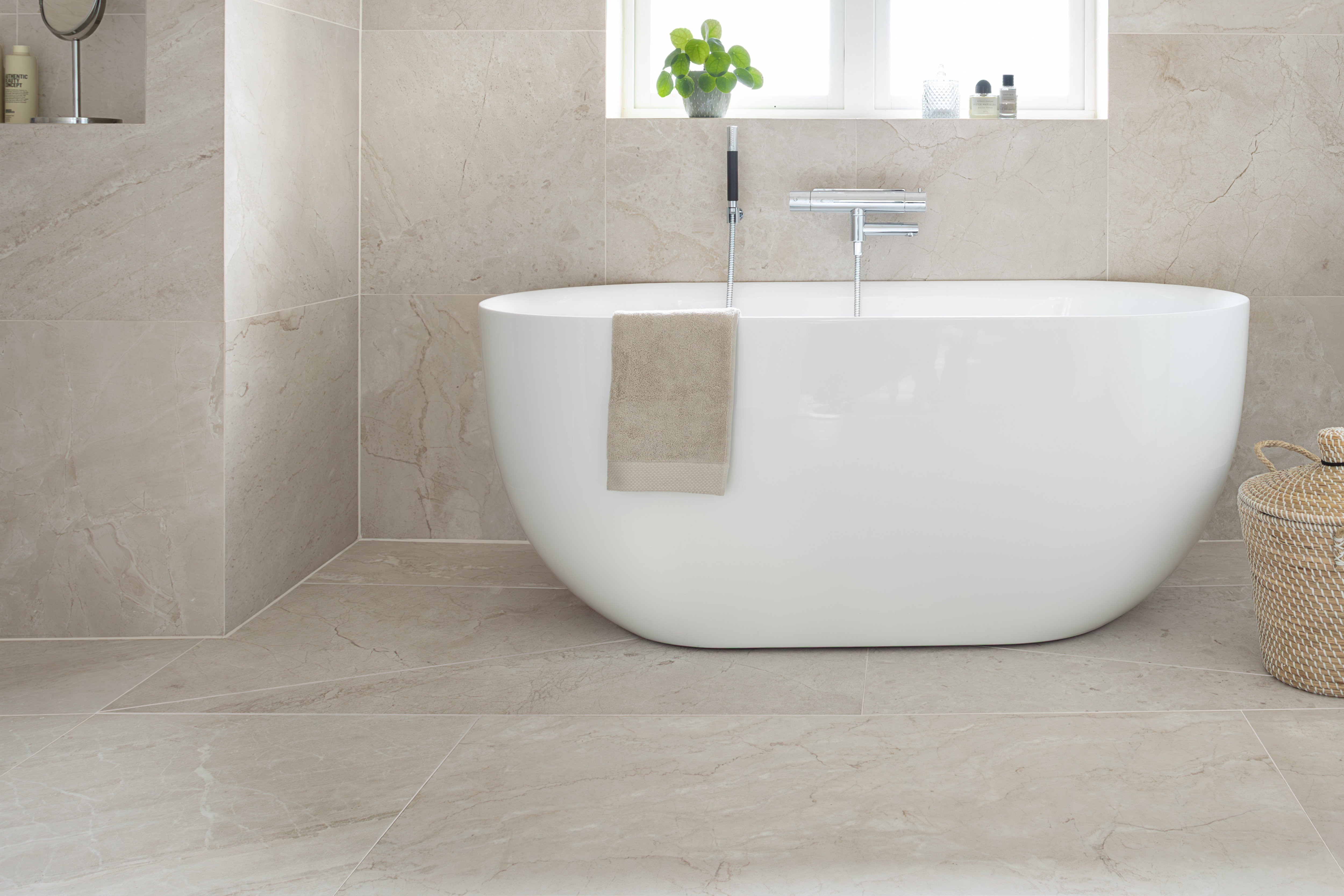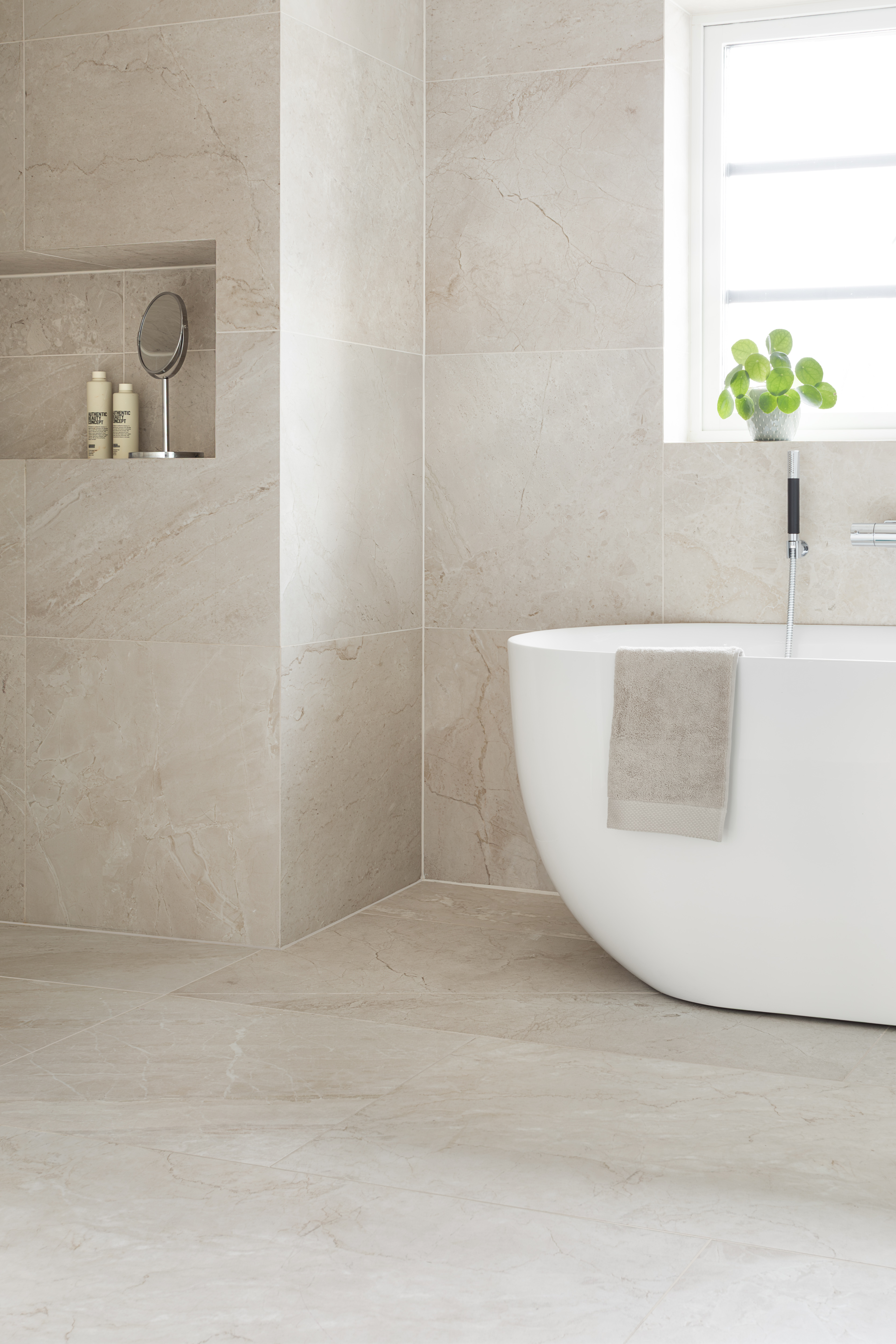 Naturfølelse på sitt beste! Her utformet som en marmorert flis med strukturer, vener og med todimensjonal grafikk som gir en beriket følelse av ekte marmor.